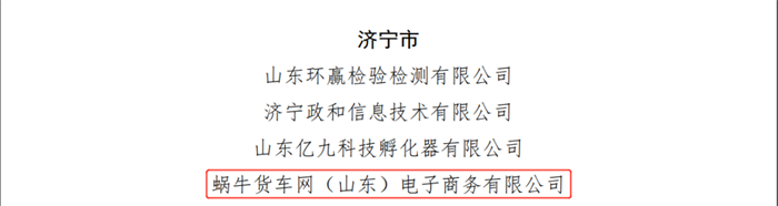 12月28日,從山東省工業(yè)和信息化廳發(fā)布的《關(guān)于公布2022年度山東省中小企業(yè)公共服務(wù)示范平臺(tái)名單的通知》魯工信服〔2022〕274號(hào)文件中傳來(lái)喜訊!經(jīng)主管部門推薦、形式審查、專家評(píng)審等多環(huán)節(jié)審查,脫穎而出,成功獲批!認(rèn)定蝸牛貨車網(wǎng)(山東)電子商務(wù)有限公司(下稱:蝸牛貨車)為2022年度山東省中小企業(yè)公共服務(wù)示范平臺(tái)。