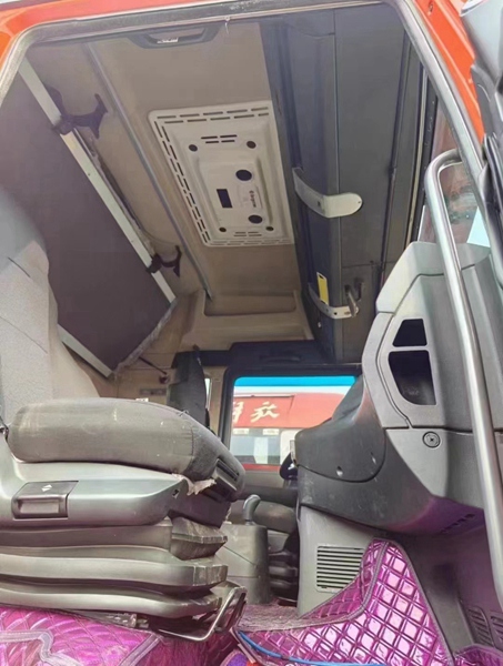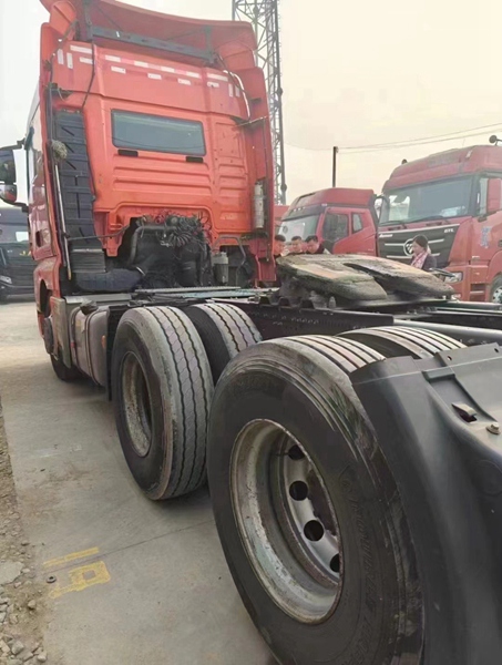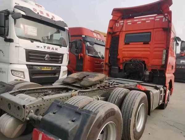 新到梁山華通二手車市場一臺21年3月金標汕德卡牽引車,二手汕德卡牽引車,540馬力自動擋,采埃孚變速箱帶液緩,駐車空調(diào)、采暖、全車新輪胎等,車況精品。