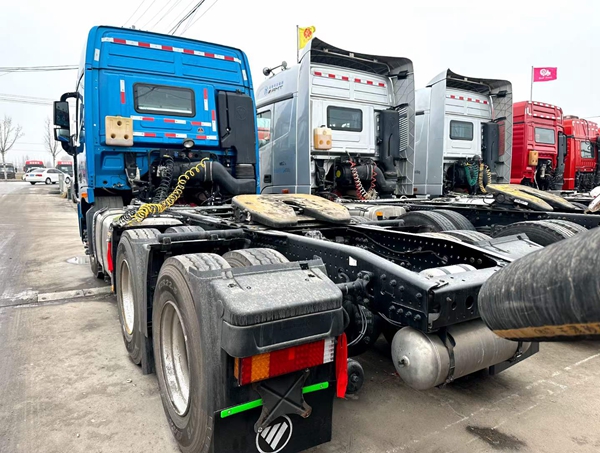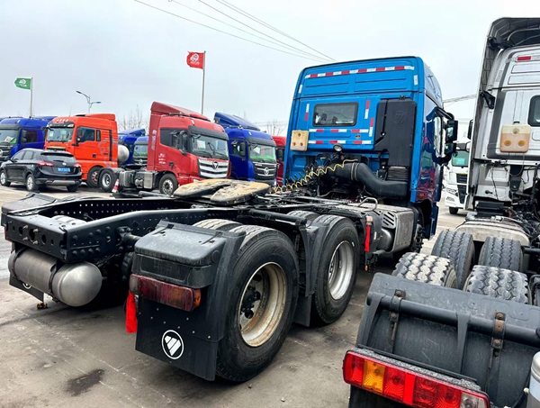 到梁山華通二手車市場多臺二手歐曼GTL牽引車,21年11月份上戶的歐曼GTL牽引車,富康470馬力,國六排放,法士特手動擋變速箱,速比3.7。車況精品,歡迎來市場看車選車!