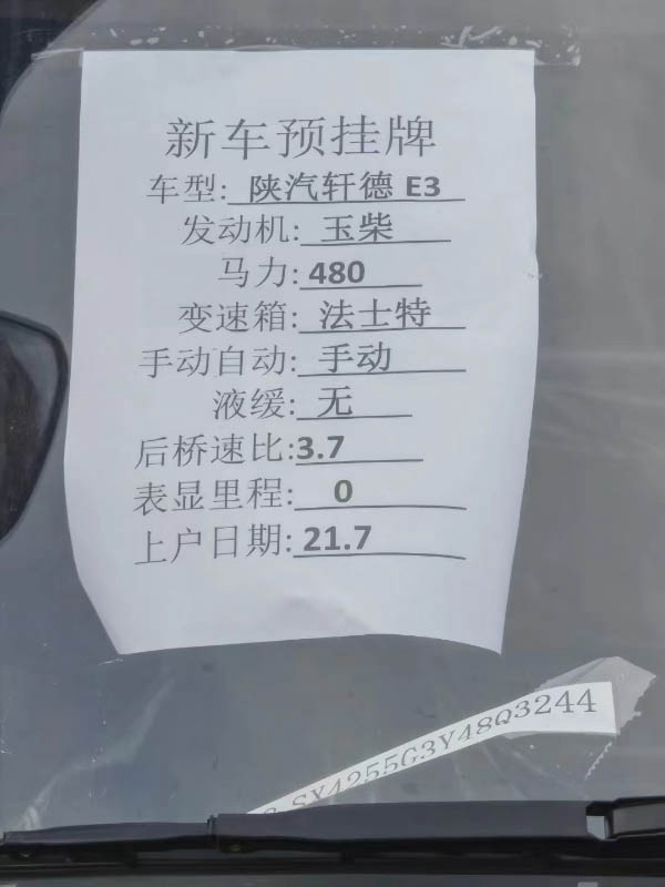 21年7月陜汽軒德E3,玉財12升480馬力,法士特手動12速,漢德后橋,速比3.7,全國提檔支持分期付款