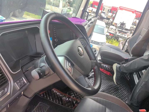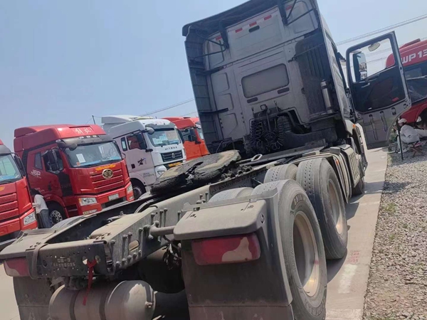 新到梁山華通二手車市場一臺精品二手解放牽引車,21年跑車,二手解放大J7牽引車,國六排放,采埃孚自動擋帶液緩,全車鋁合金鋼圈,車況精品,包提全國。買二手貨車就到梁山華通二手車市場。